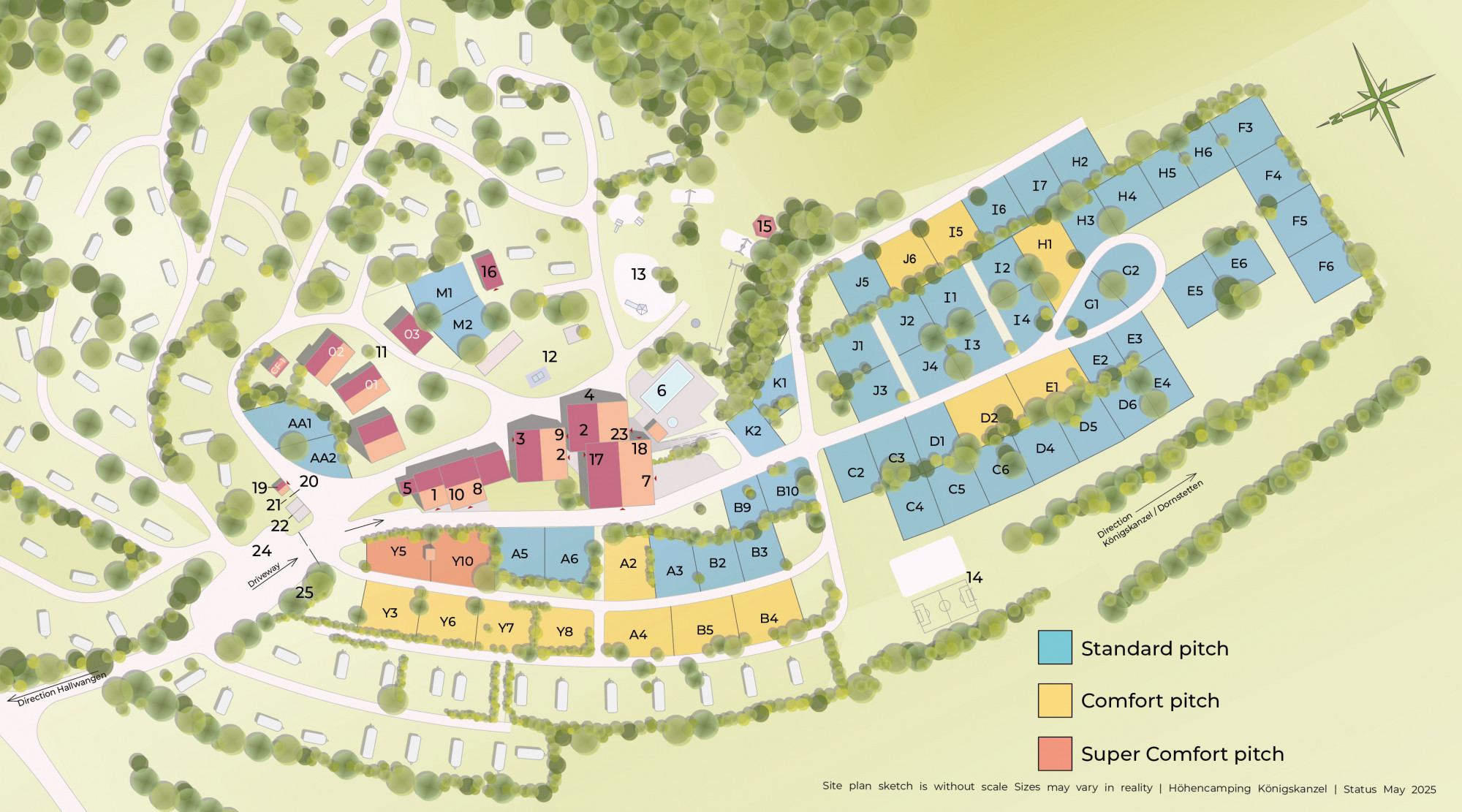 | Comfort pitch (130 sqm) | 14,50 € | 17,00 € |